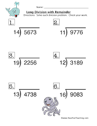 Long Division With Remainder Worksheet Long Division Division With Remainders Worksheet Math Division