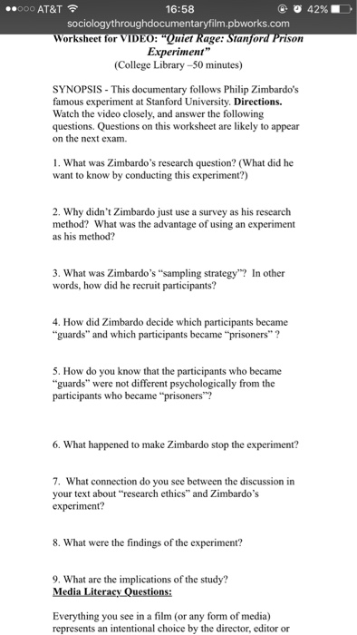 Soc Hw 1 Doc Worksheet For Video U201cquiet Rage Stanford Prison Experiment U201d Synopsis This Documentary Follows Philip Zimbardo S Famous Experiment At Course Hero